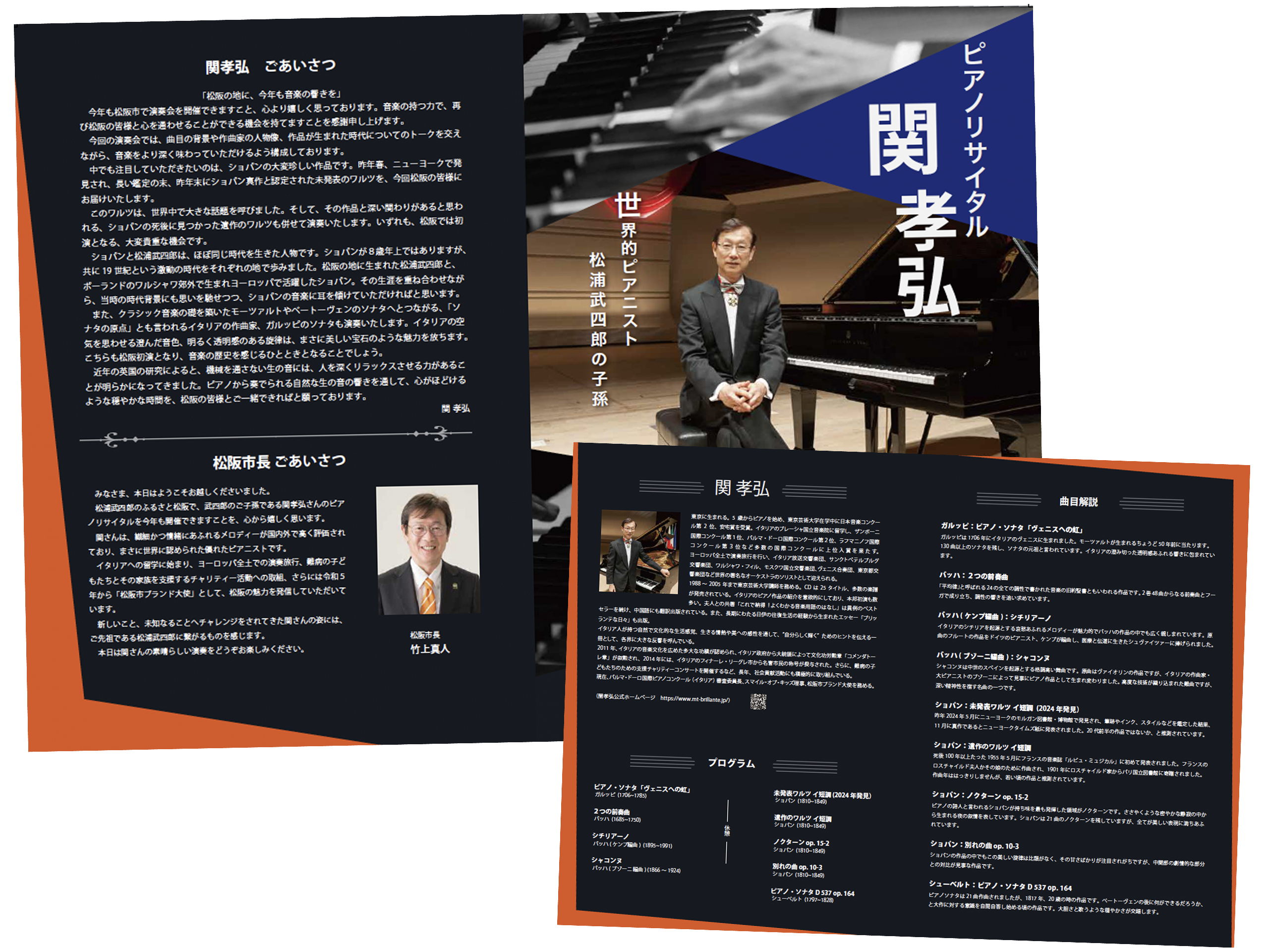 Design 松阪市ピアノリサイタル プログラム制作 View more Design 豊洲トークコンサート2025 プログラム制作 View more Design エスオーレ株式会社様 View more Design ジャズピアニスト・大林武司様ホームページ制作 View more Design マリアンジェラ様ホームページ制作 View more Design 豊洲トークコンサート2025 チラシ制作 View more Design スナック×サウナ「かなこ」様ホームページ制作 View more Design ベーカリアベ様 ホームページ制作 View more Design 大矢アキオ様 ホームページ制作 View more Design にいなチャンネルYoutube編集 View more